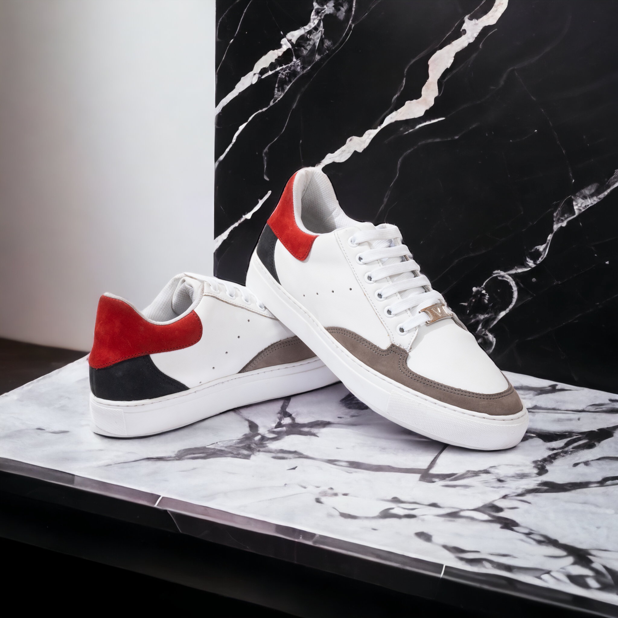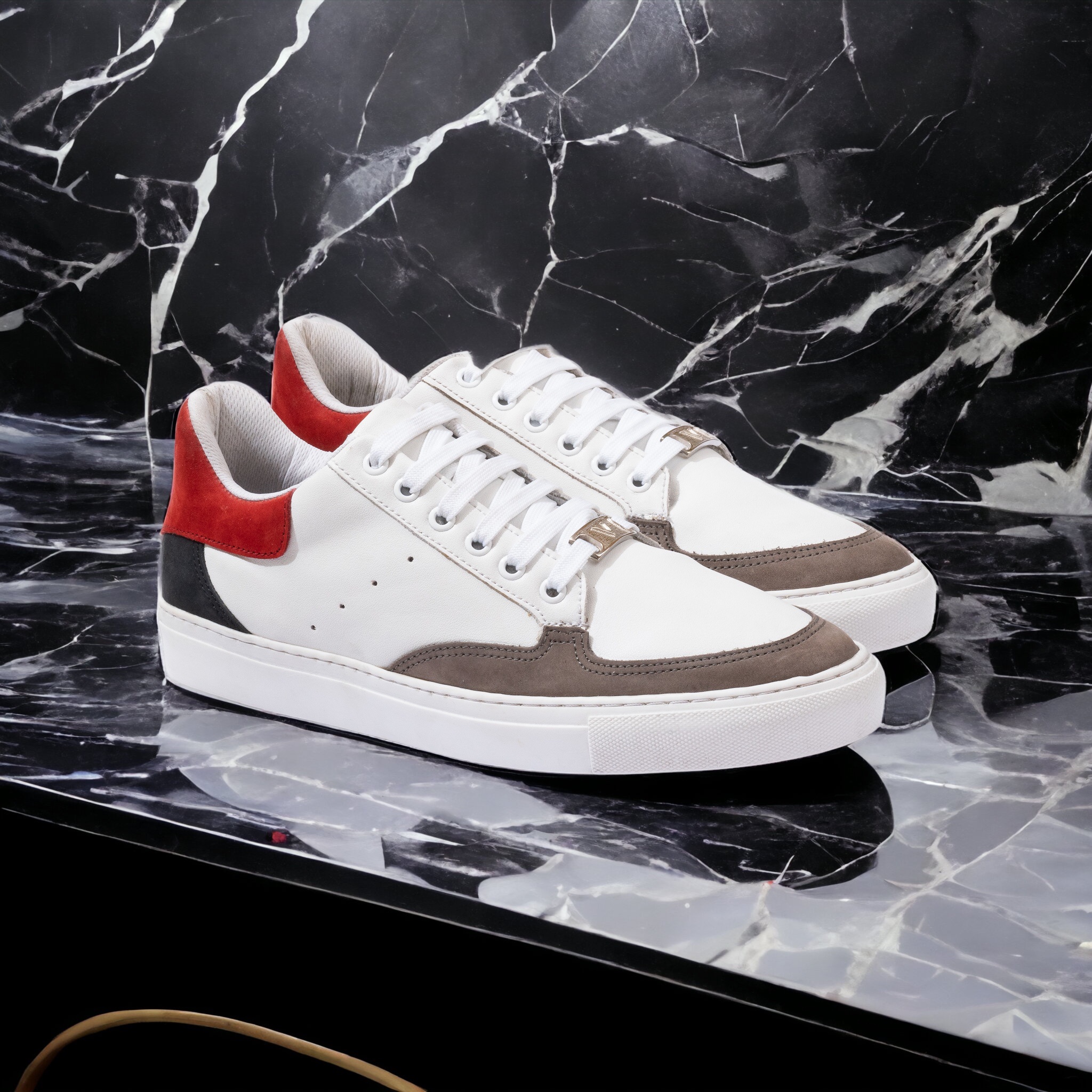 Upper: white Nappa leather/red|grey Nubuk leather-