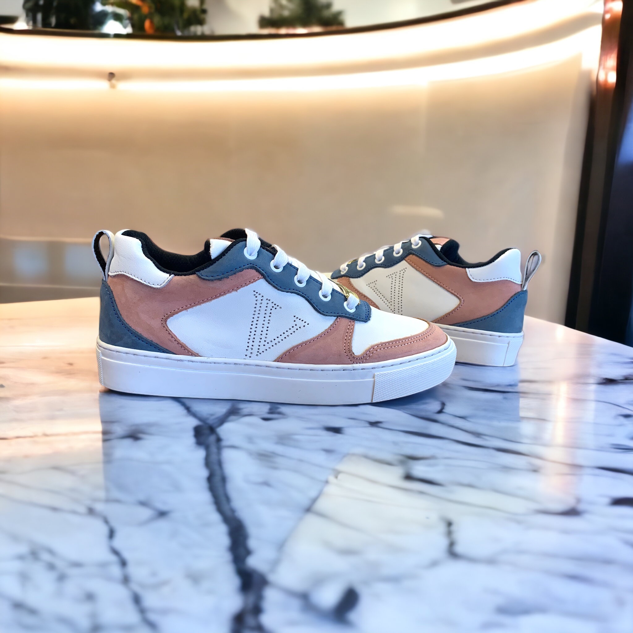 Upper: White Nappa leather/Sky blue|Rose pink Nubuk leather-